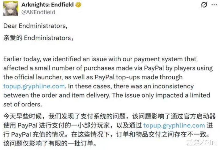 当然,要说最大的篓子,还得是终末地海外 PayPal 扣款事件。