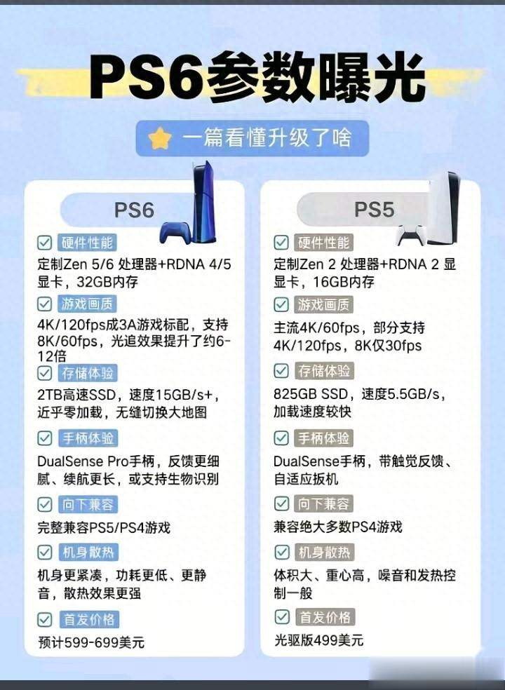 索尼PS6配置参数曝光对比PS5有哪些配置升级? 一张参数图带你看懂