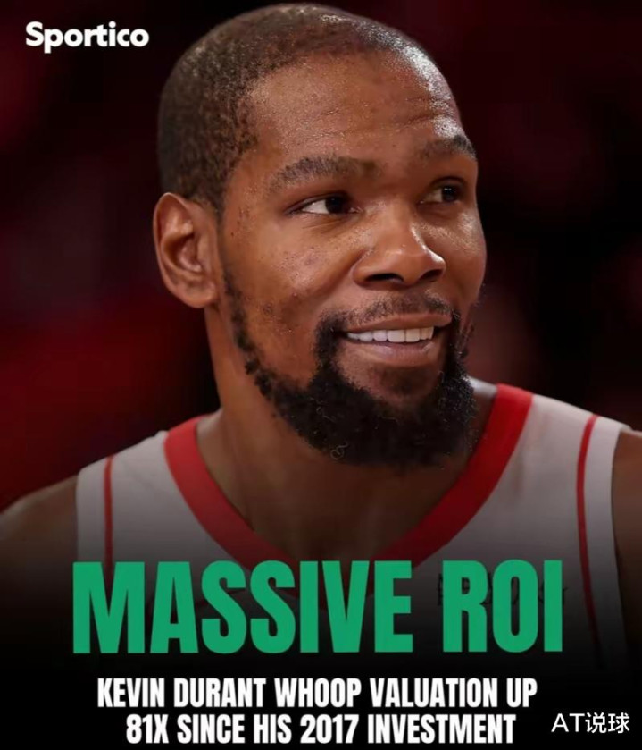 近日,火箭队球星杜兰特在2017年入股的一家健康追踪公司Whoop市值飙升,估值达到了101亿美金,相比较于2017年的一亿多美金足足涨了81倍。
