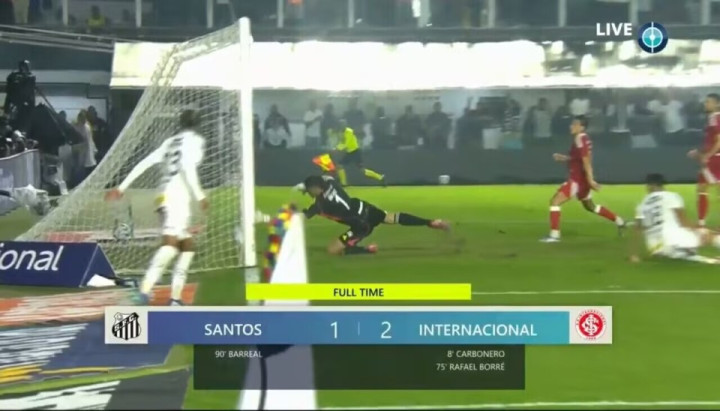 巴甲联赛桑托斯主场1-2输给了巴西国际。