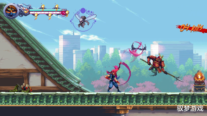 游戏中加入的 “断头步” 和 “血殇” 机制,更是为操作体验增色不少。“断头步” 类似于《茶杯头》的 “跳跃格挡” 与《空洞骑士》的 “下劈” 的结合,玩家在空中时,再次按下跳跃键,贤二便会做出旋转动作,当触碰到敌人或飞行物时,不仅可以造成伤害,还能借此再次跃起,实现多段跳跃。这一机制在平台跳跃和解谜环节中发挥着关键作用,玩家需要巧妙地利用 “断头步”,在狭窄的平台间穿梭,躲避各种陷阱,跨越看似难以逾越的障碍。