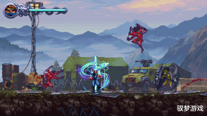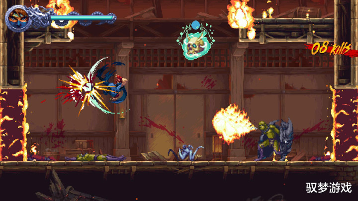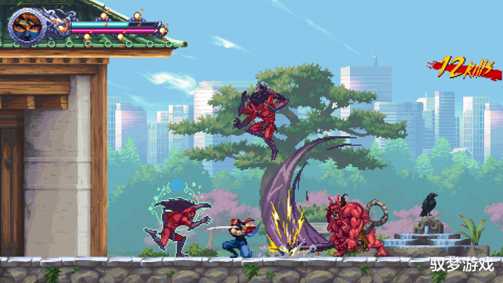 《忍者龙剑传外传:怒之羁绊》采用了复古的像素风格画面,这种风格不仅唤起了老玩家们的怀旧之情,还为游戏增添了一份独特的艺术魅力。游戏中的角色、敌人和场景都绘制得十分精细,每一个像素都仿佛在诉说着一个故事。角色的动作流畅自然,攻击特效绚丽夺目,尤其是在触发 “血殇” 效果时,那一瞬间的光芒绽放,给玩家带来了强烈的视觉冲击。
