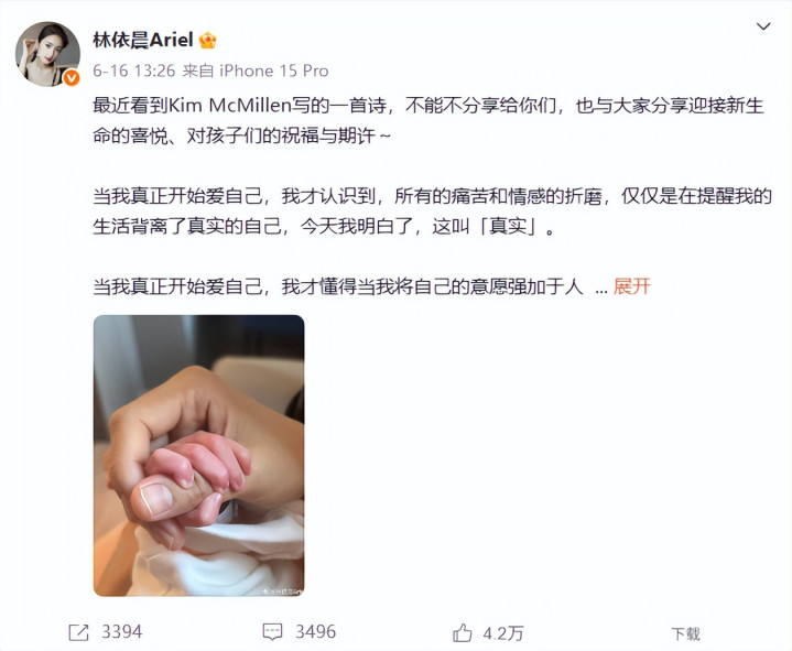 林依晨也明白外界“关心”她在婚姻中的状况,6月16日曾发长文,文中多次用到“当我真正开始爱自己”,暗示自己没有因为婚姻而迷失自我,不卑不亢才能得到夫家的尊重。