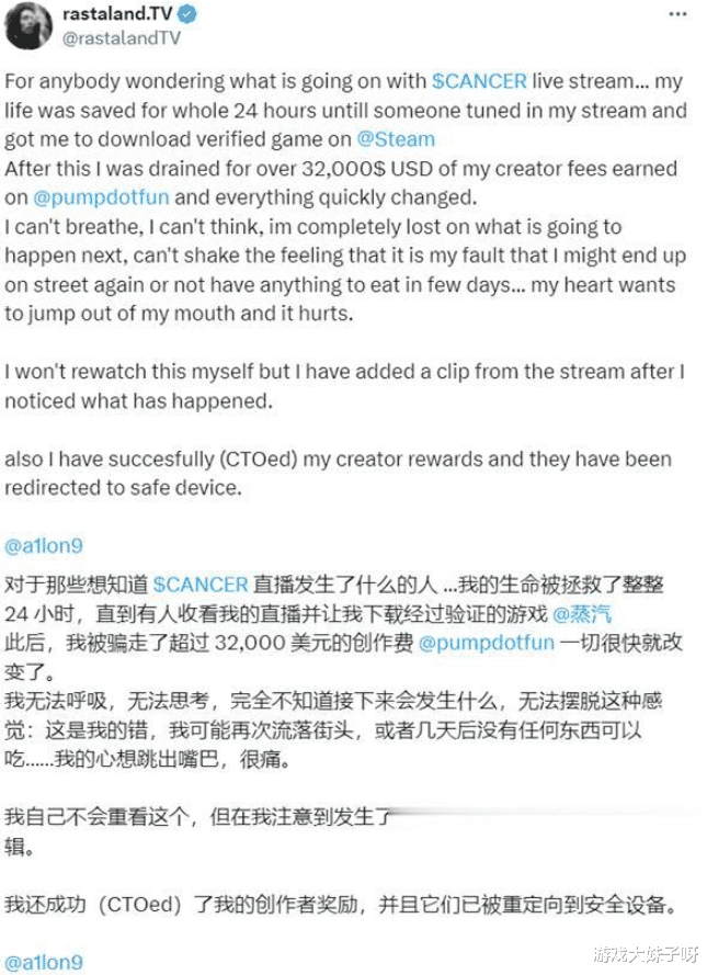 Steam上出现恶意游戏, 受害人达478人, 抗癌主播22万救命钱被盗