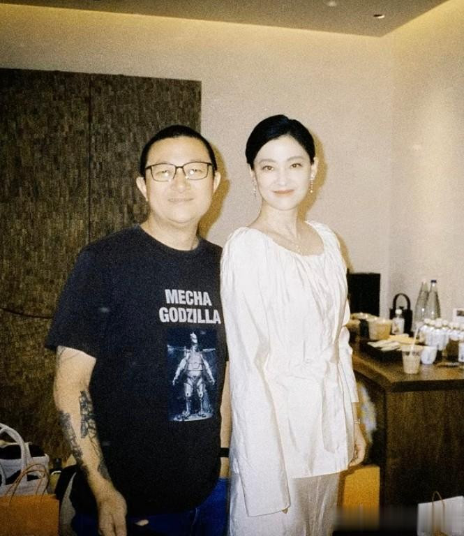 最后的重头戏当然是梅婷和老公的同框合影,曾剑是摄影师剪辑师出身,常年在幕后工作,穿衣打扮没那么时尚,但“花手臂”很抢镜,私底下应该也是有点个性的。梅婷站在老公旁边白到反光,脸比曾剑小了两圈,婚后恩爱了那么多年,夫妻相已经很足了。