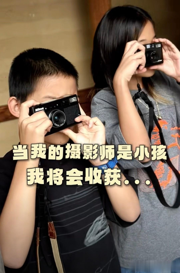 梅婷给孩子们发放了专业的拍照设备,快快和弟弟阳阳学得有模有样,站在片场隔老远给妈妈拍照,从小看多了梅婷出席活动,快快阳阳都算是有经验的小大人了,稍微一教就会。